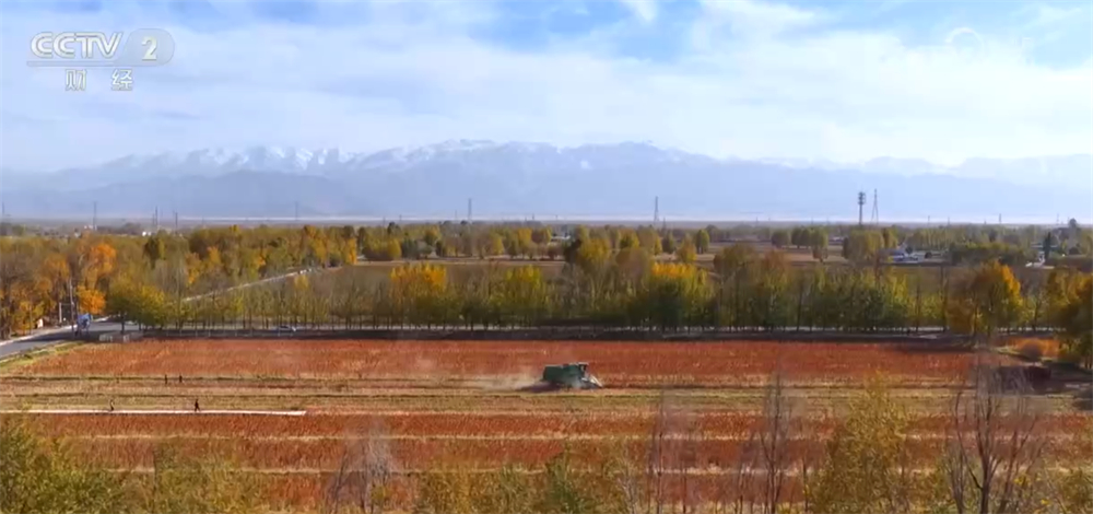 目前这里的一万多亩藜麦正处在收获的关键期。这两天,当地正忙着用收割机采收藜麦。当地负责这个的人说,现在藜麦采收已经全部采用机械化作业,预计1周左右就能完成上万亩藜麦的采收工作。