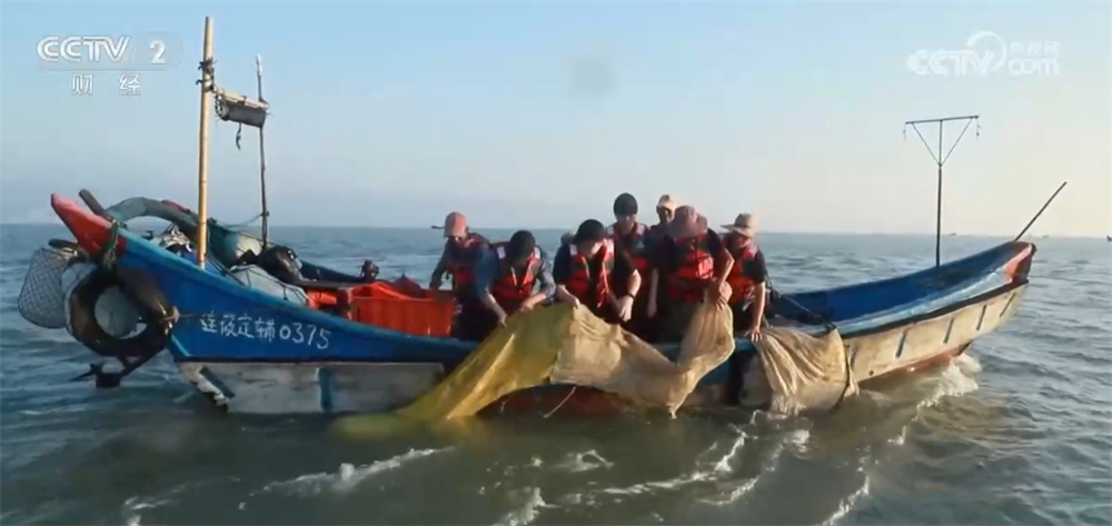 凌晨四点,在连江县一处码头,村民们早早地驾船来到附近海域,放下渔网,采取三条渔船编组作业的方式,将长约23厘米的丁香鱼捕获上船。